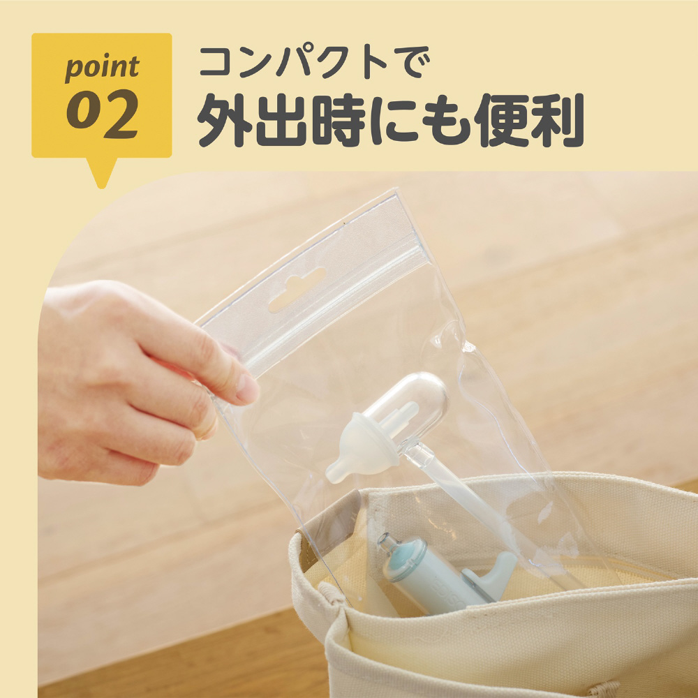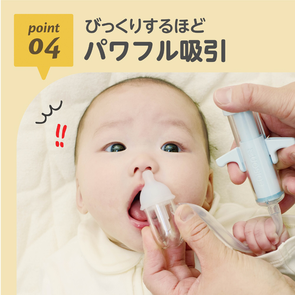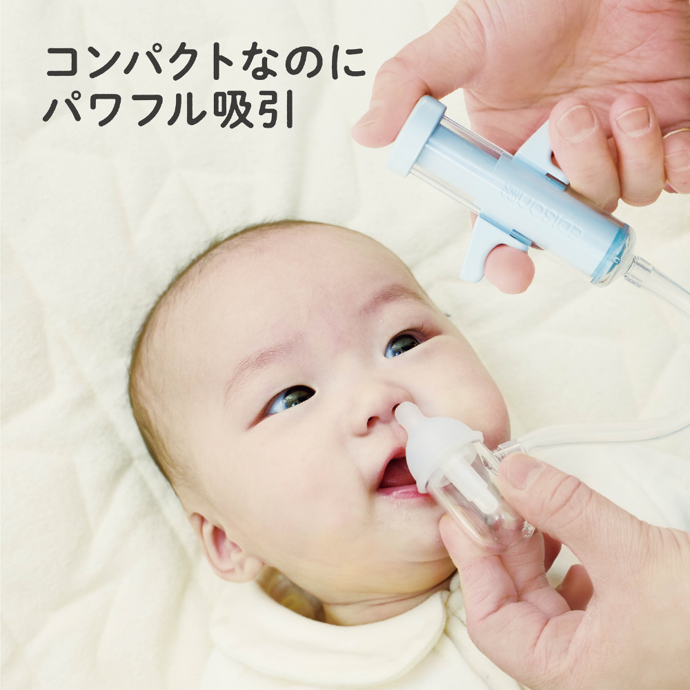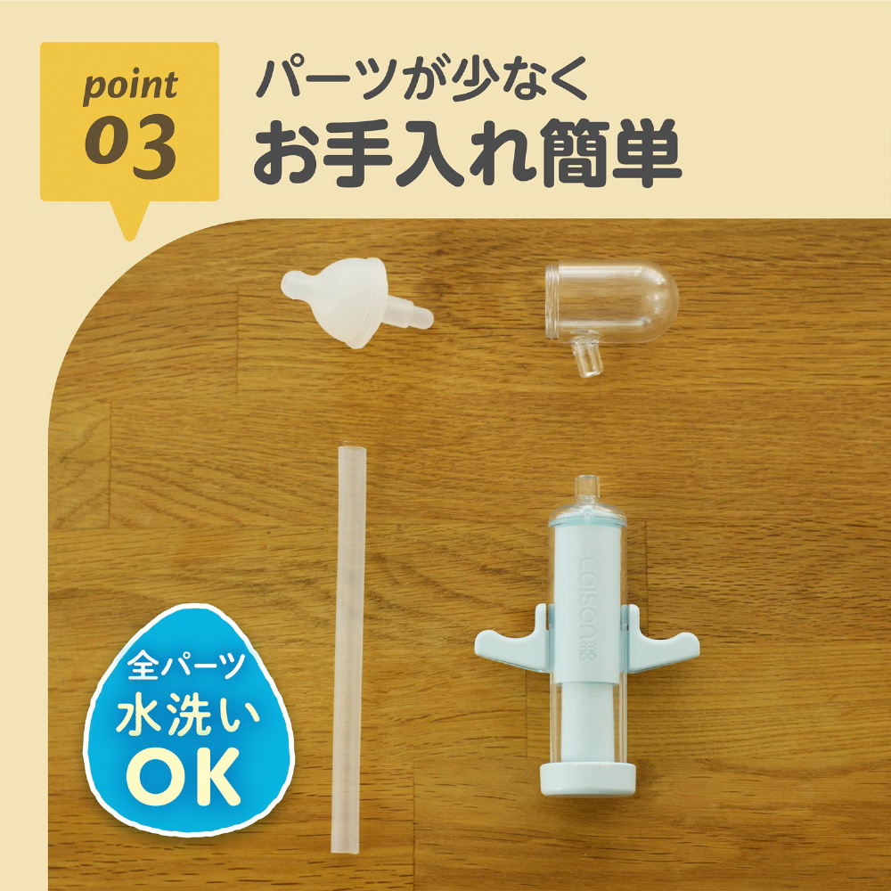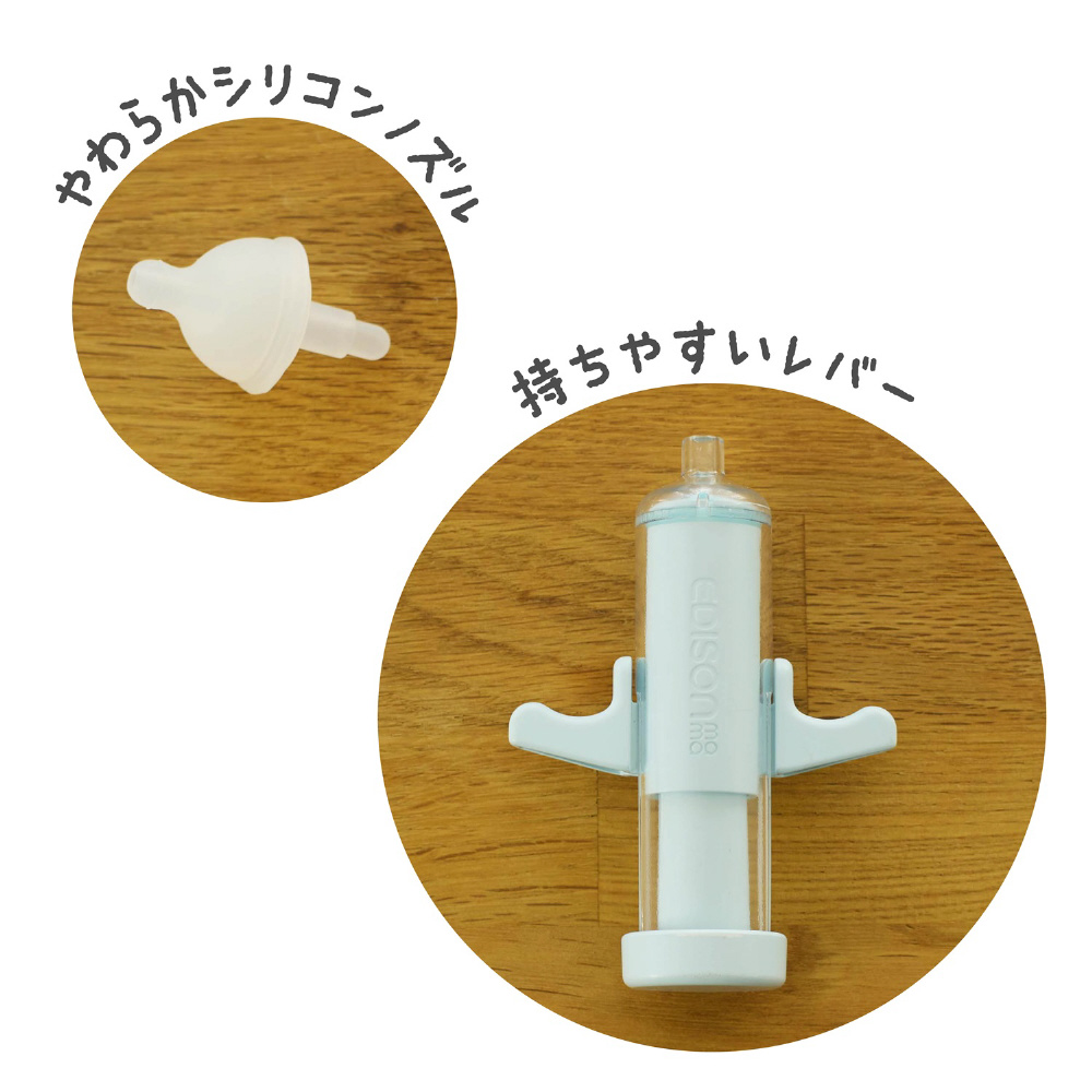 コンパクトながらもパワフル吸引力(26.66Kpa)。レバーを引くだけの簡単操作で鼻水吸引が出来ます。パーツが少ないのでお手入れ簡単。操作音が無く赤ちゃんが嫌がらずにケアできます。