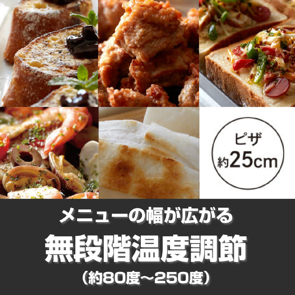 ワイド庫内と無段階温度調節で、様々な料理に対応します。