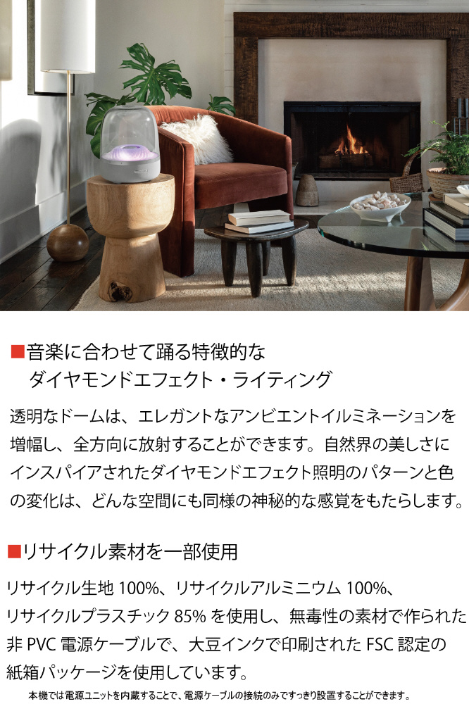 アイコニックな透明のドームと様々なテーマのライティングが楽しめるBluetoothスピーカー。