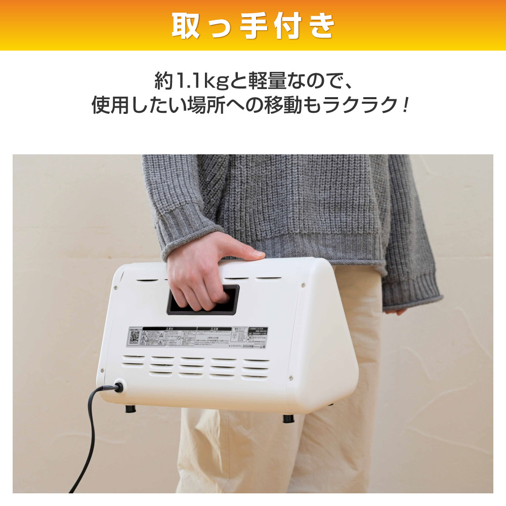 コンパクトサイズで、デスク下の足元や脱衣所・トイレの補助暖房に!