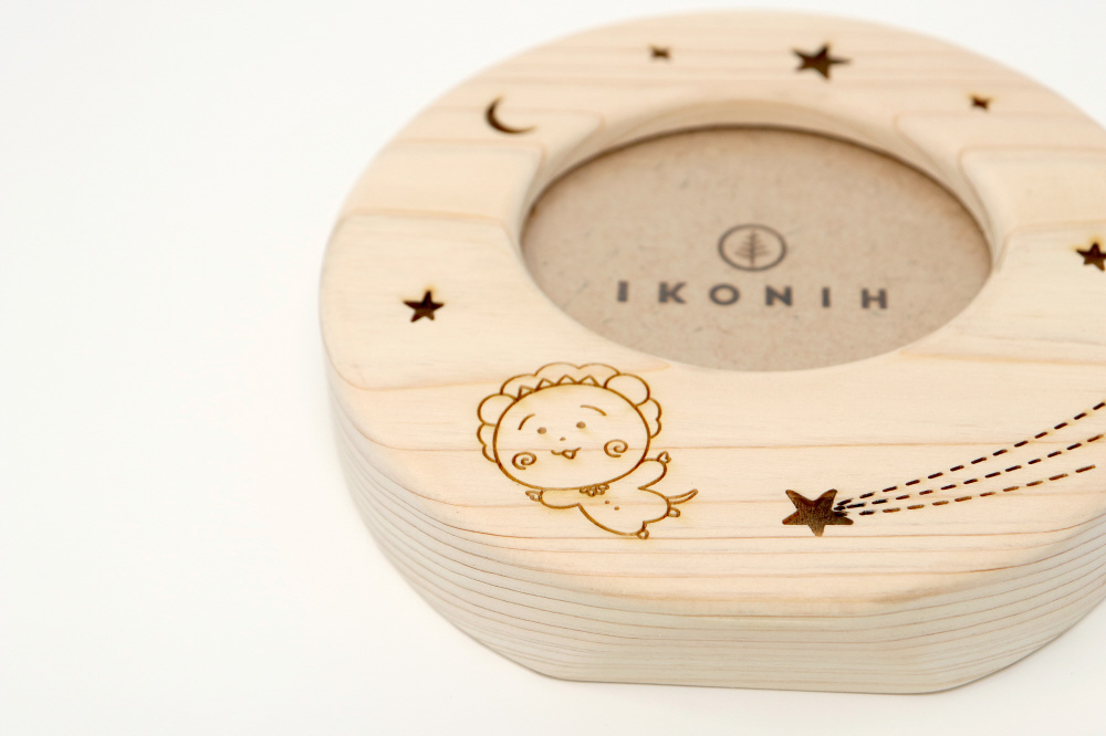 出産祝いの贈り物にぴったりな、ラトルのおもちゃとフォトフレームと布製ポーチのセット。
