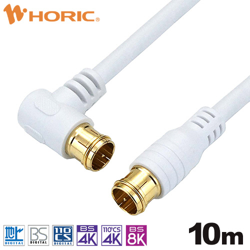 10m アンテナケーブル L字差込式/差込式コネクタ ホワイト HAT100-057LPWH