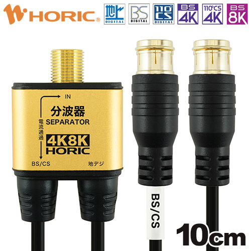 アンテナ分波器 極細ケーブル一体型 10cm 差込式コネクタ ブラック AE-326PB