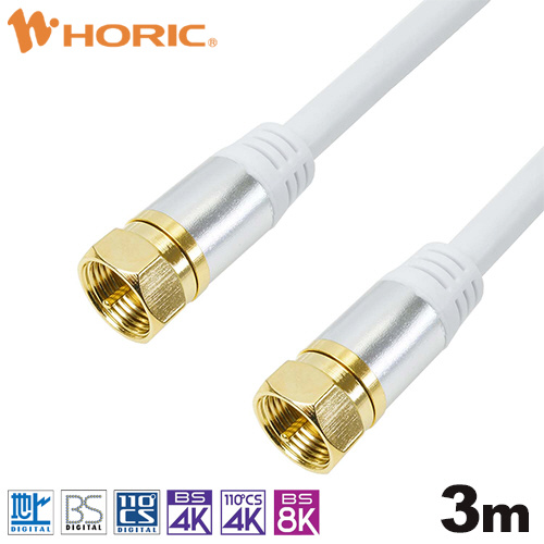 3m アンテナケーブル アルミヘッド 両側ネジ式コネクタ ホワイト AC30-368WH