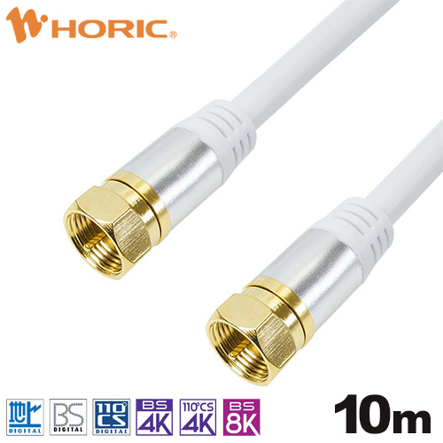 10m アンテナケーブル アルミヘッド 両側ネジ式コネクタ ホワイト AC100-371WH