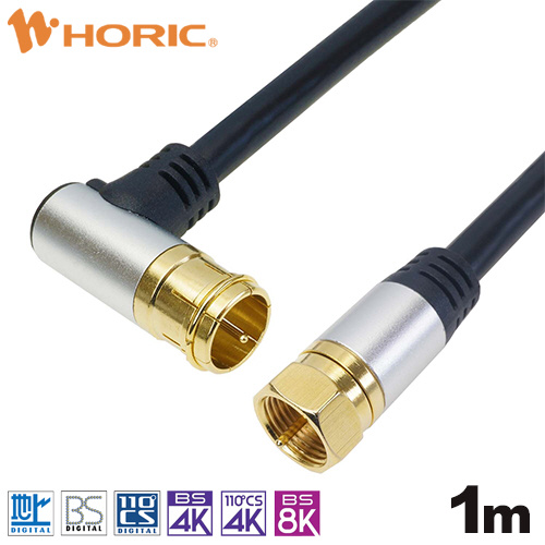 1m アンテナケーブル アルミヘッド L字差込式/ネジ式コネクタ ブラック AC10-386BK