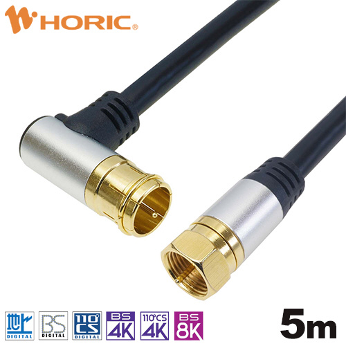 5m アンテナケーブル アルミヘッド L字差込式/ネジ式コネクタ ブラック AC50-390BK