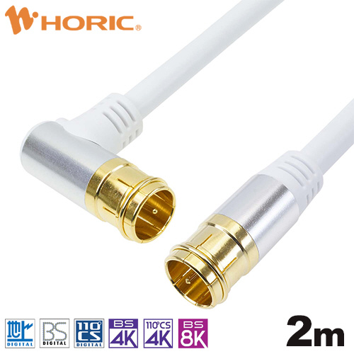 商品名 2m アンテナケーブル アルミヘッド L字差込式/差込式コネクタ ホワイト AC20-395WH