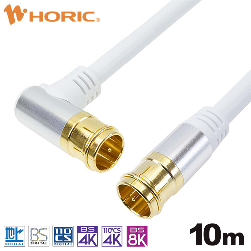 10m アンテナケーブル アルミヘッド L字差込式/差込式コネクタ ホワイト AC100-399WH