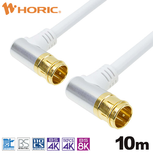 10m アンテナケーブル アルミヘッド 両側L字差込式コネクタ ホワイト AC100-685WH