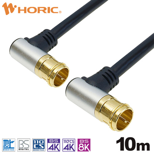 10m アンテナケーブル アルミヘッド 両側L字差込式コネクタ ブラック AC100-686BK