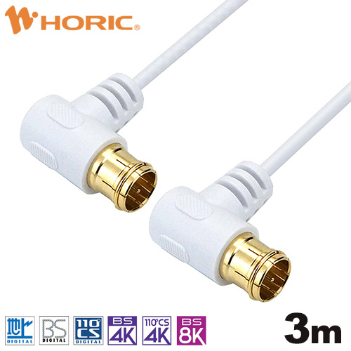 3m 極細アンテナケーブル 両側L字差込式コネクタ ホワイト AC30-784WW