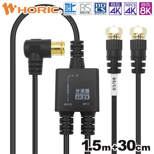 アンテナ分波器 極細ケーブル一体型 1.5m/30cm ネジ式コネクタ ブラック AE-791BB