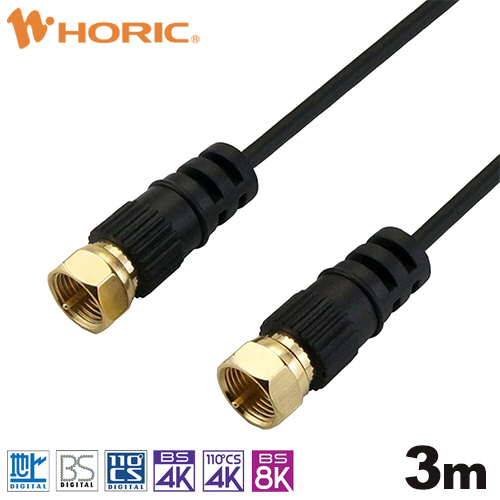 3m 極細アンテナケーブル 両側ネジ式コネクタ ブラック AC30-484BK