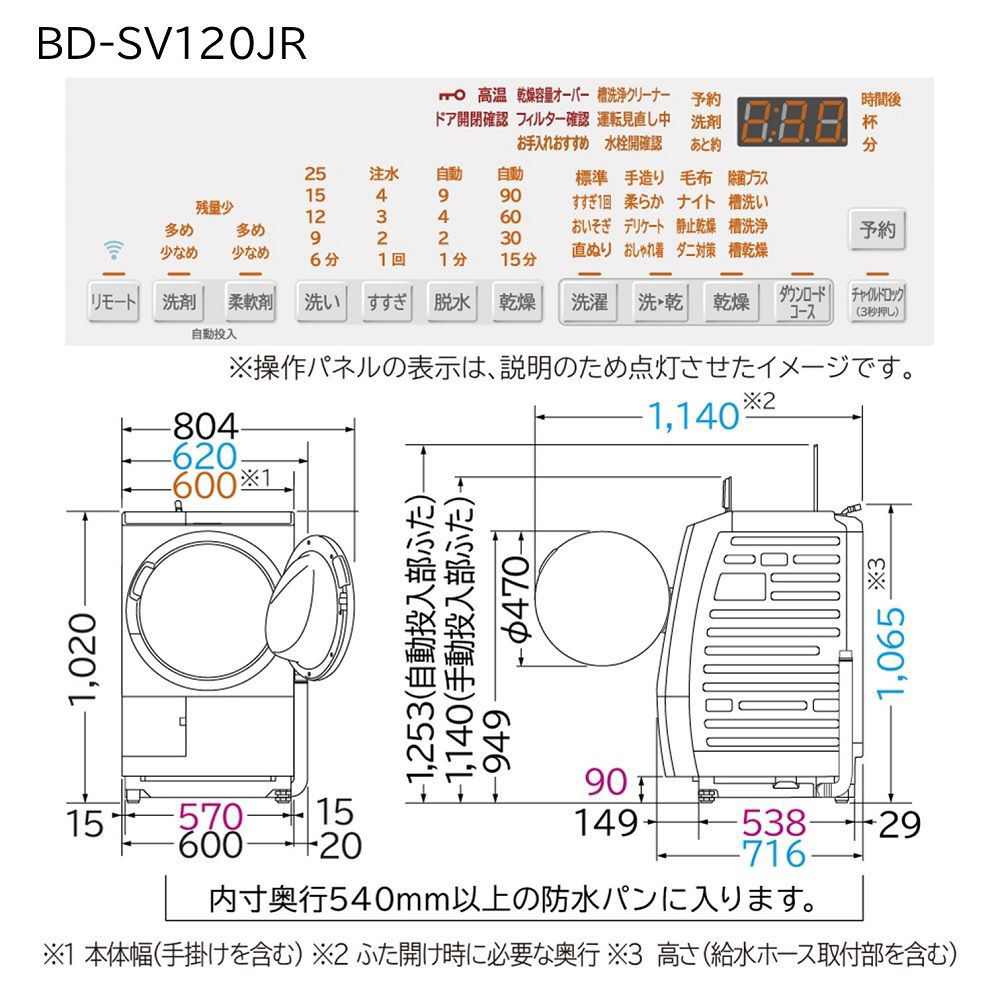 ドラム式洗濯機 ビッグドラム ホワイト BD-SV120JR-W [洗濯12.0kg /乾燥6.0kg /ヒーター乾燥(水冷・除湿タイプ) /右開き]【生産完了品】