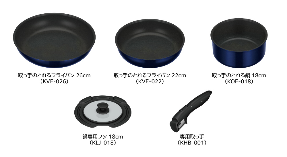 | 商品名 | 取っ手のとれるフライパン5点セットEA ディープブルー KSE-5A-DPBL |
