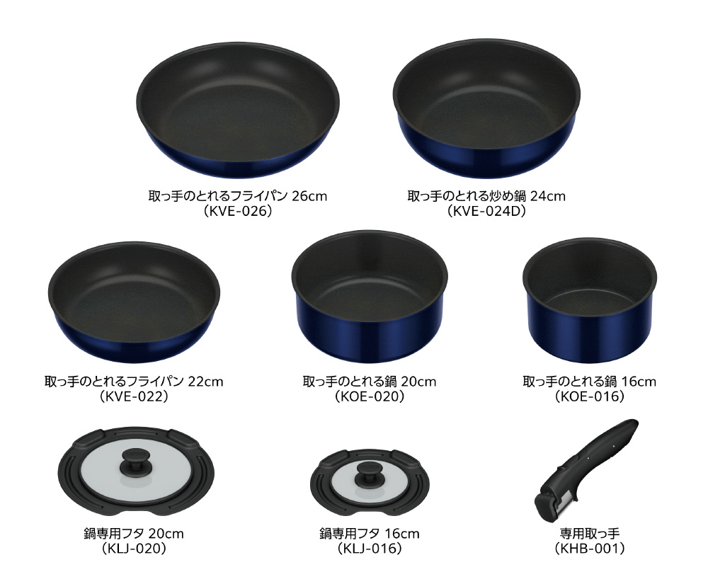| 商品名 | 取っ手のとれるフライパン8点セットEA ディープブルー KSE-8A-DPBL |