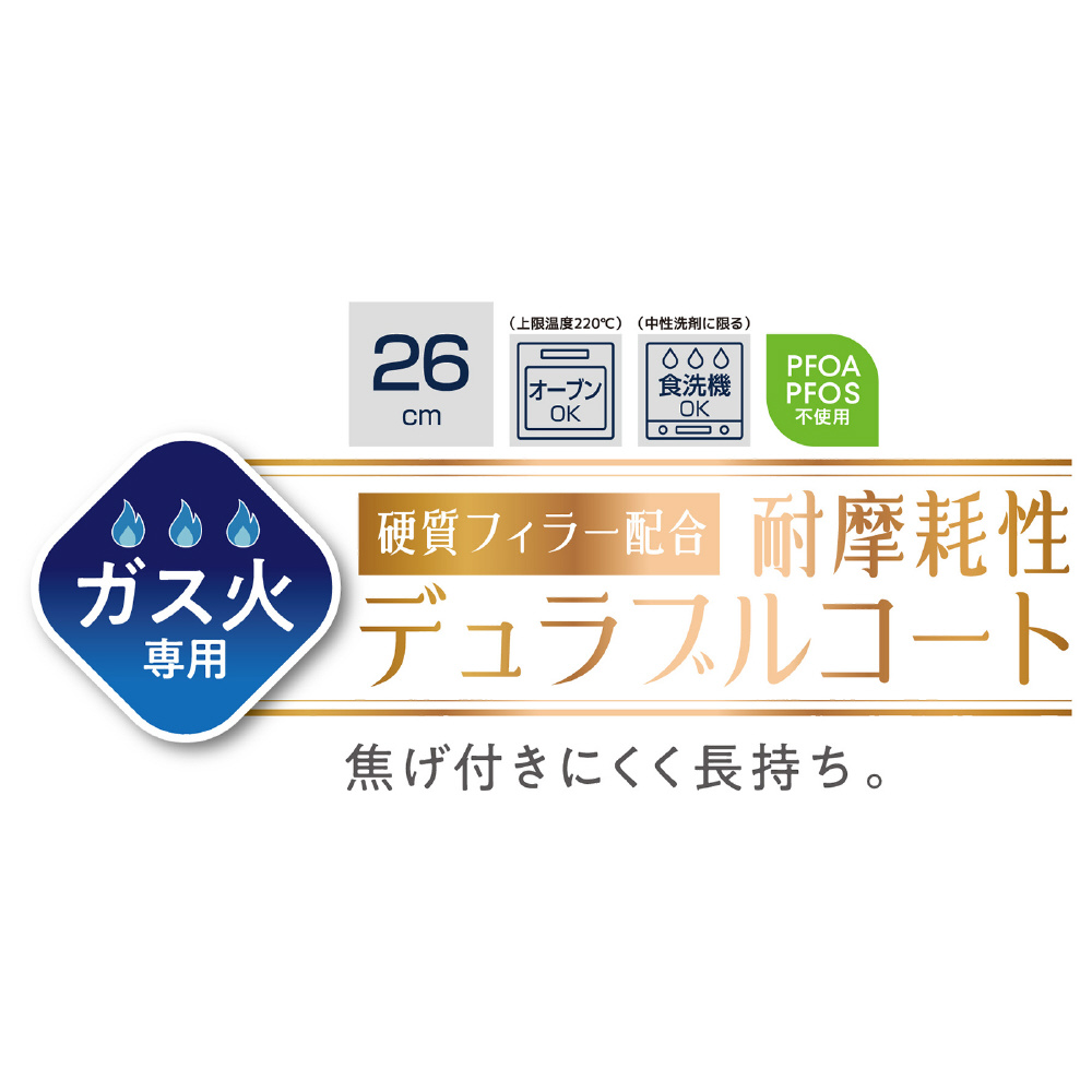 サーモス デュラブルシリーズの取っ手のとれるフライパンは、ガス火専用で、耐久性に優れたデュラブルコートを採用しています。