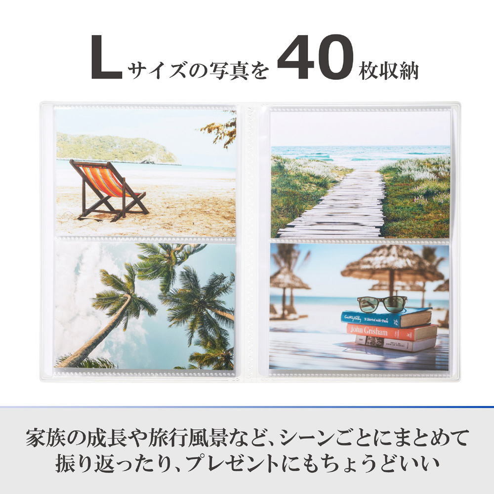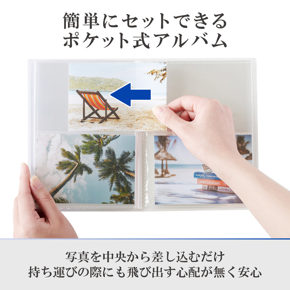 収納ポケットは、写真本来の色をそのまま美しく見せる透明度の高いフィルムを採用しています。