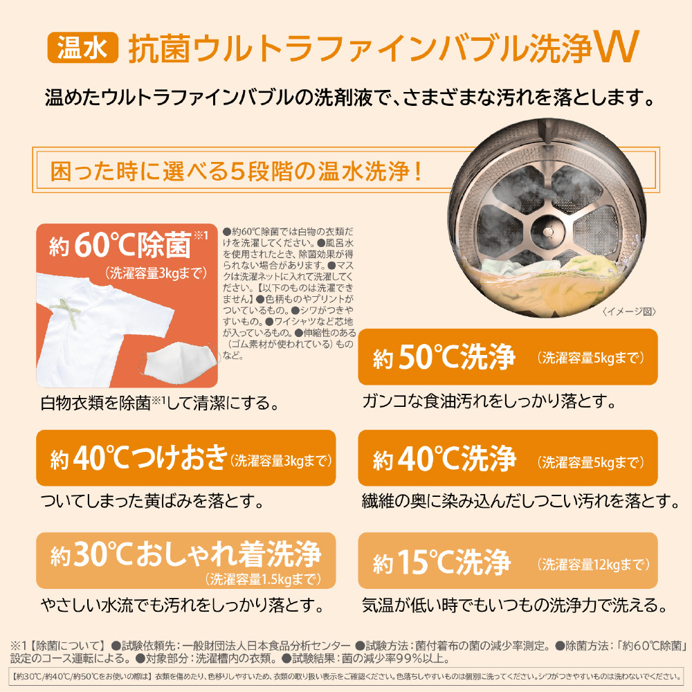 抗菌ウルトラファインバブル洗浄W、液体洗剤・柔軟剤自動投入、スマートフォン連携を新搭載、清潔機能充実のハイスペックモデル。