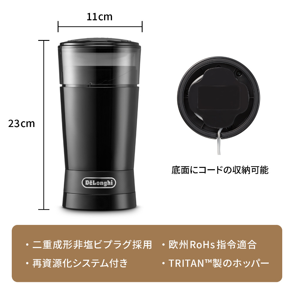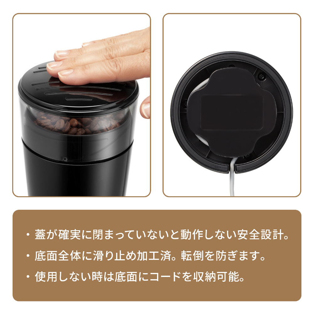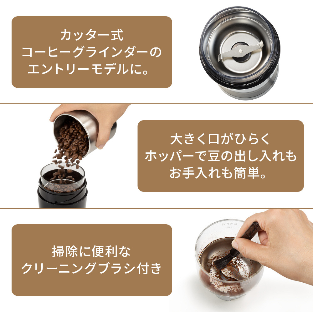 ブラックカラーのシンプルでモダンなデザインが特徴のカッター式グラインダー。