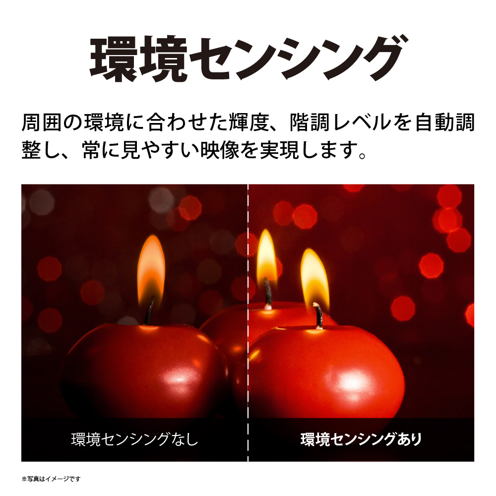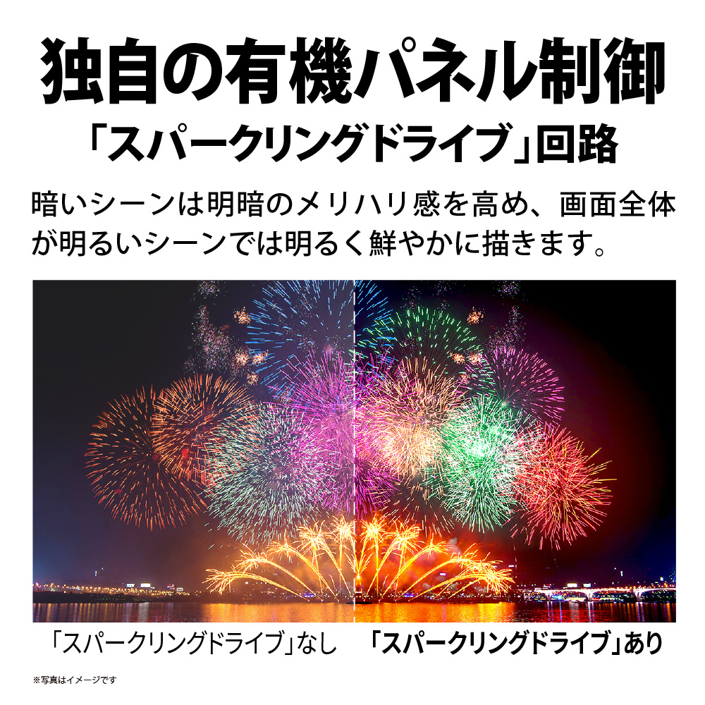 発光効率に優れた最新有機ELパネルの発光量を緻密に制御することで、消費電力は抑えながら明暗豊かな映像を実現します。