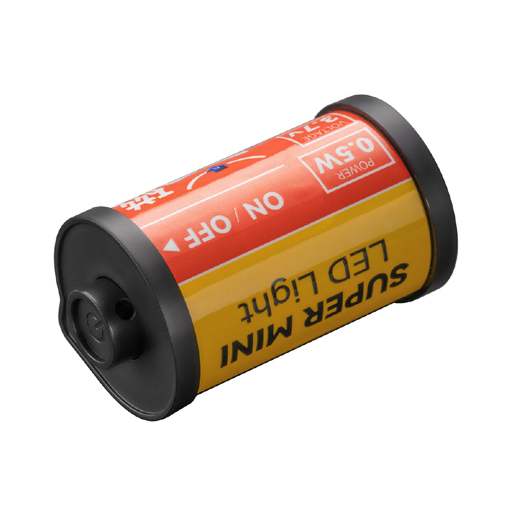 フィルムを模したユニークなデザインが特徴的な充電式ミニLEDライト