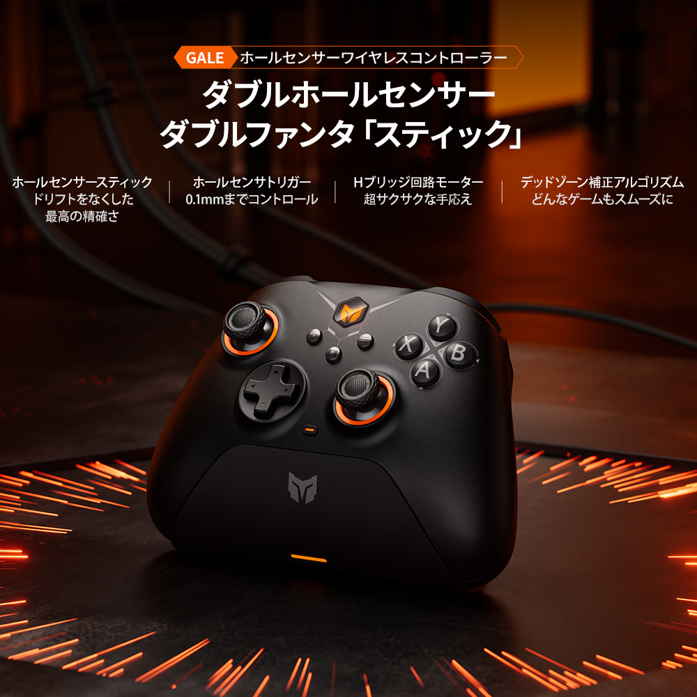 ホール効果センサー仕様ジョイスティック・トリガー搭載 マルチプラットフォーム ワイヤレス&有線ゲーミングコントローラー 任天堂Switch & Windows10/11&iOS、Android対応 ジャイロ搭載