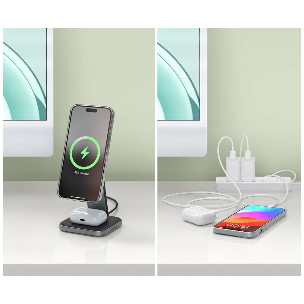 商品名 Satechi 2-IN-1 フォアダブル QI2 ワイヤレスチャージングスタンド グレー PST-Q21FM 【864】