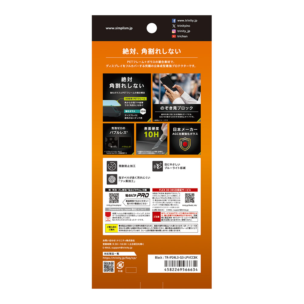 | 商品名 | iPhone 16 Pro Max [FLEX 3D] のぞき見防止 複合フレームガラス ブラック TR-IP24L3-G3-LPVCCBK |