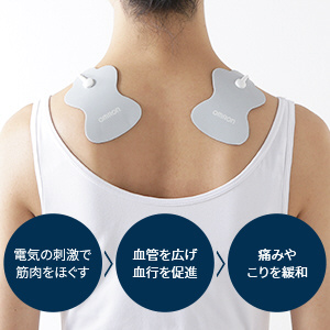 こりの症状をほぐすとされる低い周波数を組み合わせたプログラムで治療します。
