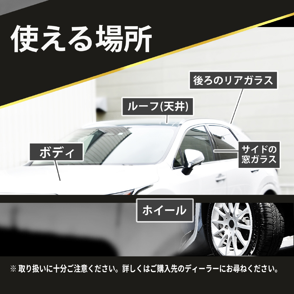 フロントガラス、サイドミラー、ライトカバー、合わせガラス、鏡には使用できません。