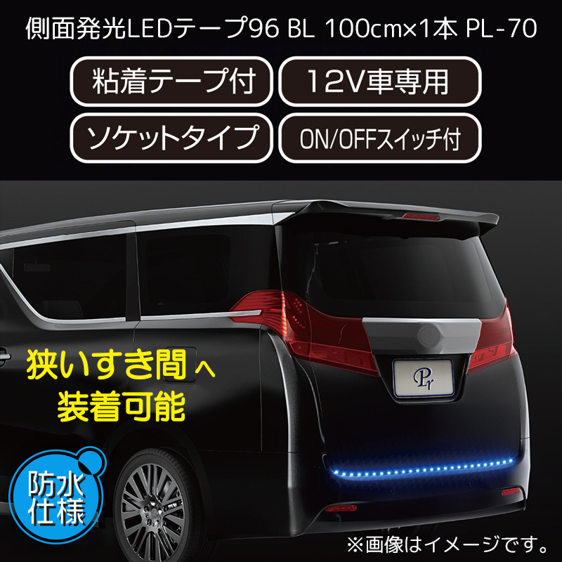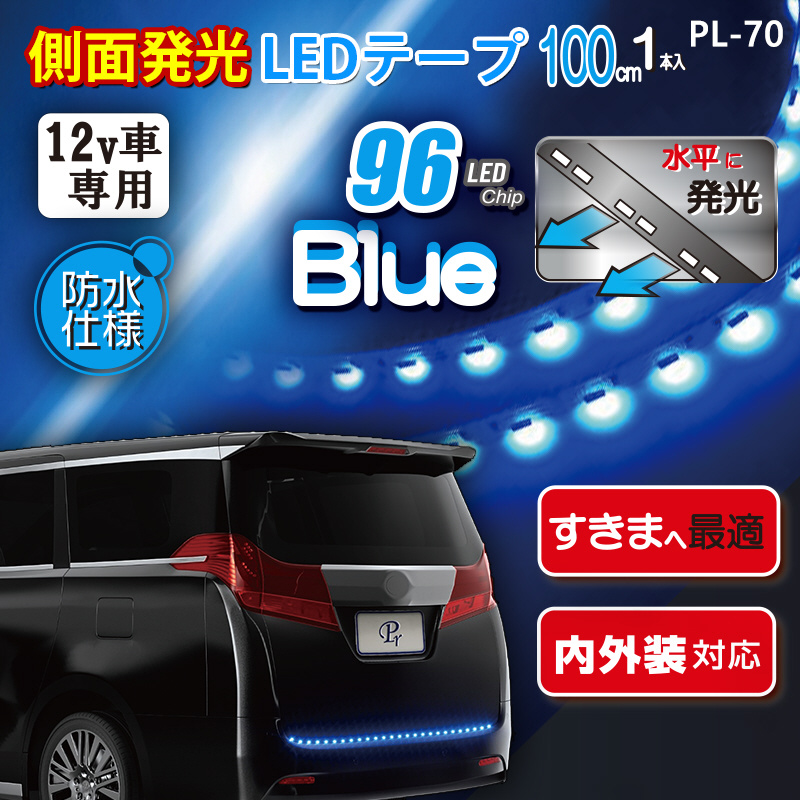 側面発光LEDテープ。すきまへ最適。内外装対応。青い光が水平に発光します。