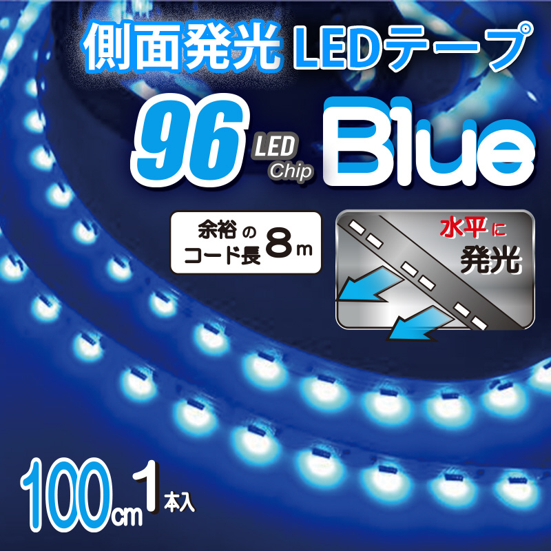 DC電源 側面発光LEDテープ100cm×1本 ブルー