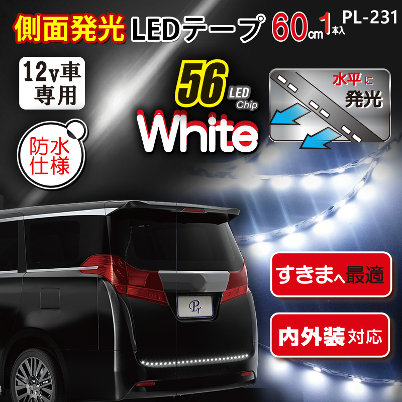 側面発光LEDテープ。すきまへ最適。内外装対応。白い光が水平に発光します。