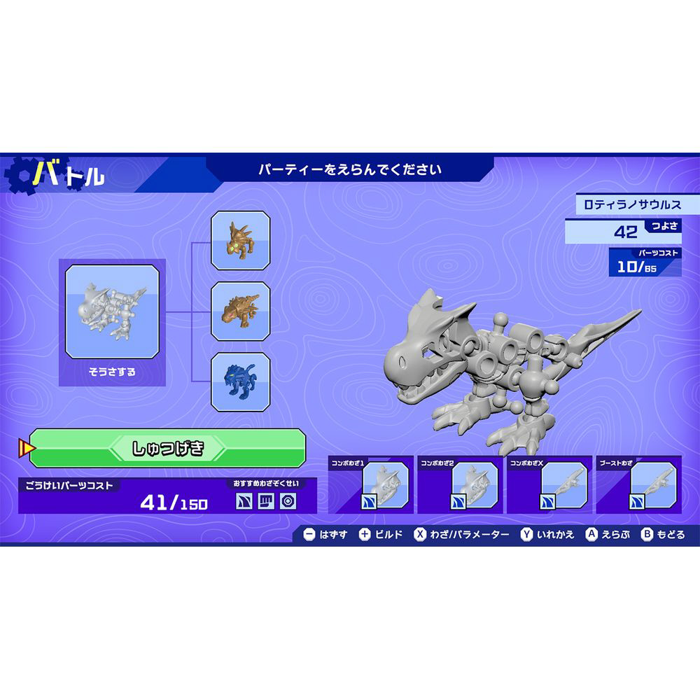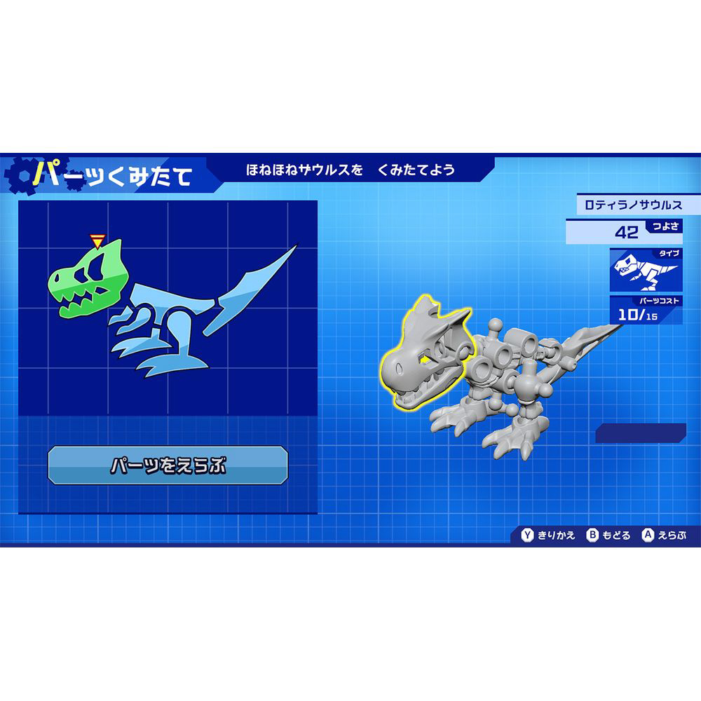 ビルドモードでは、実際の玩具菓子と同様に、さまざまなパーツを組み立てたり、組みかえることで、プレイヤーが思い描く、強くカッコいいほねほねザウルスを好きなだけ作ることができます。
