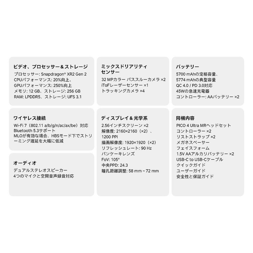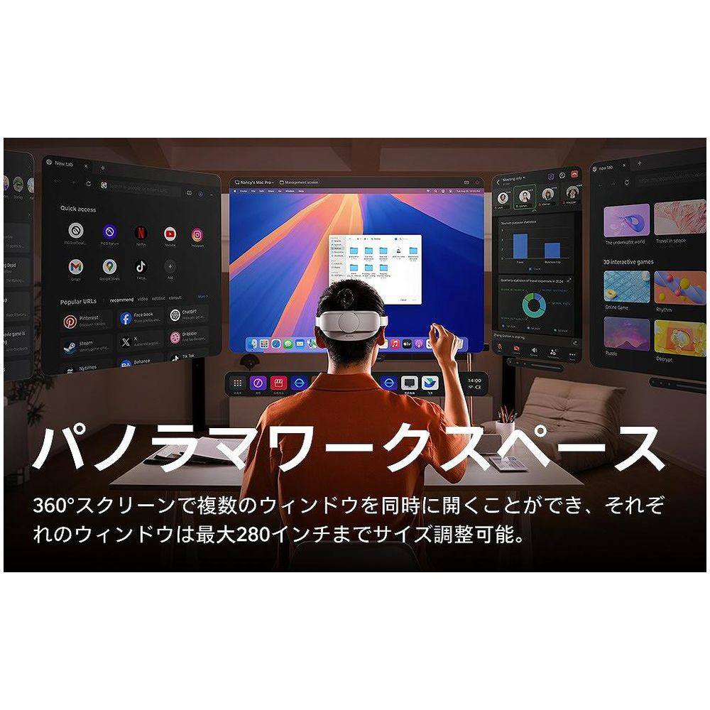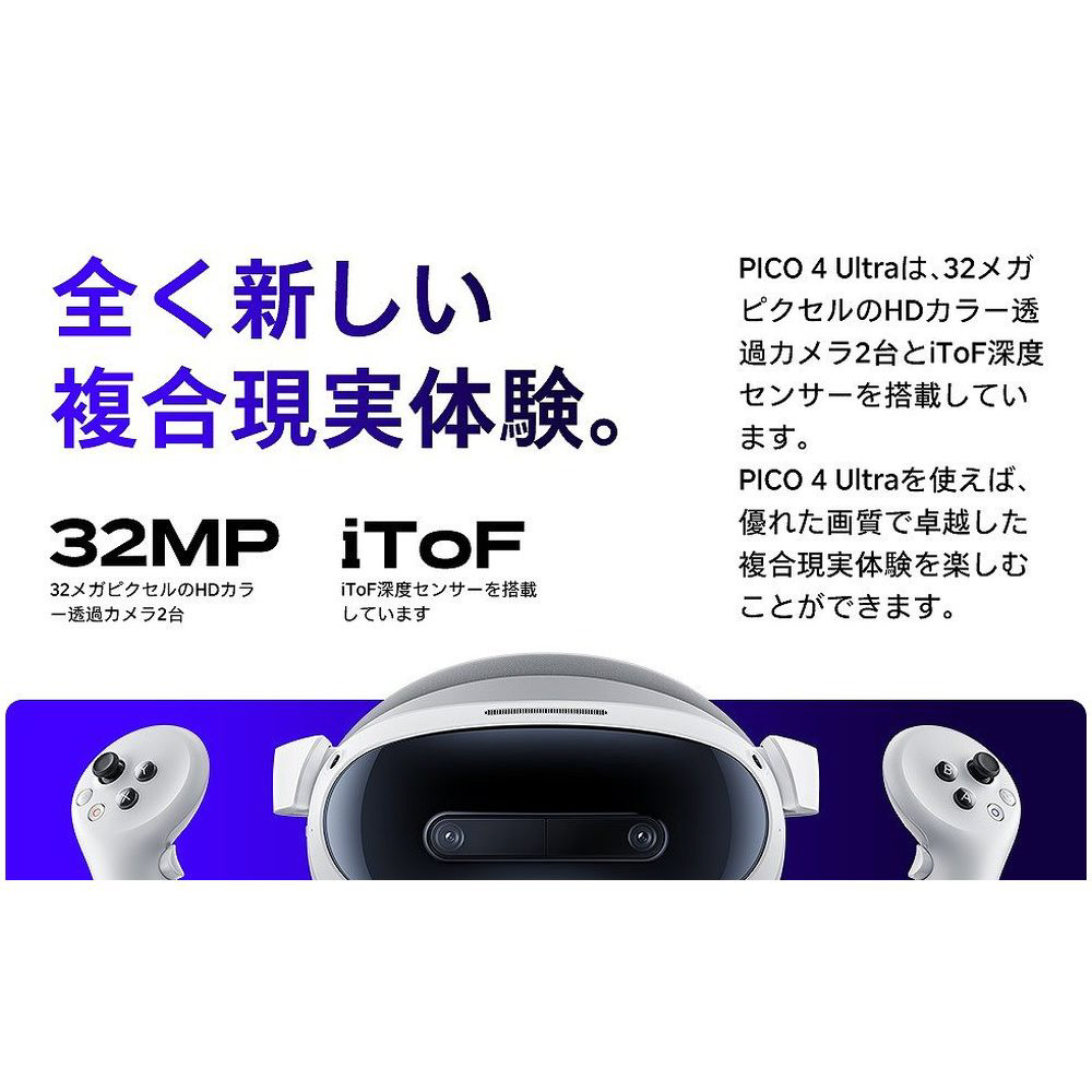 PICO 4 Ultraは、フロント部に、32メガピクセルのカメラを2台と、iToF深度感知カメラを搭載しており、優れた高精細カラーのパススルー体験を提供します。