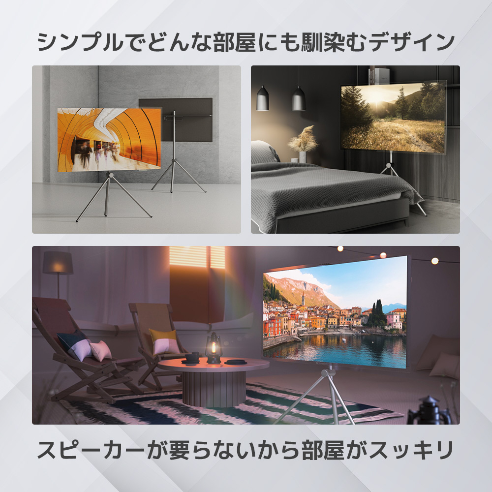 スクリーン自体が大きなスピーカーとして機能するので、スピーカーを配置するためのスペースが不要になります。また内蔵のBluetooth レシーバーにより、わずか数タップで、スクリーンをスピーカに変身させ、スマートフォンから簡単に音楽を楽しむことができます。