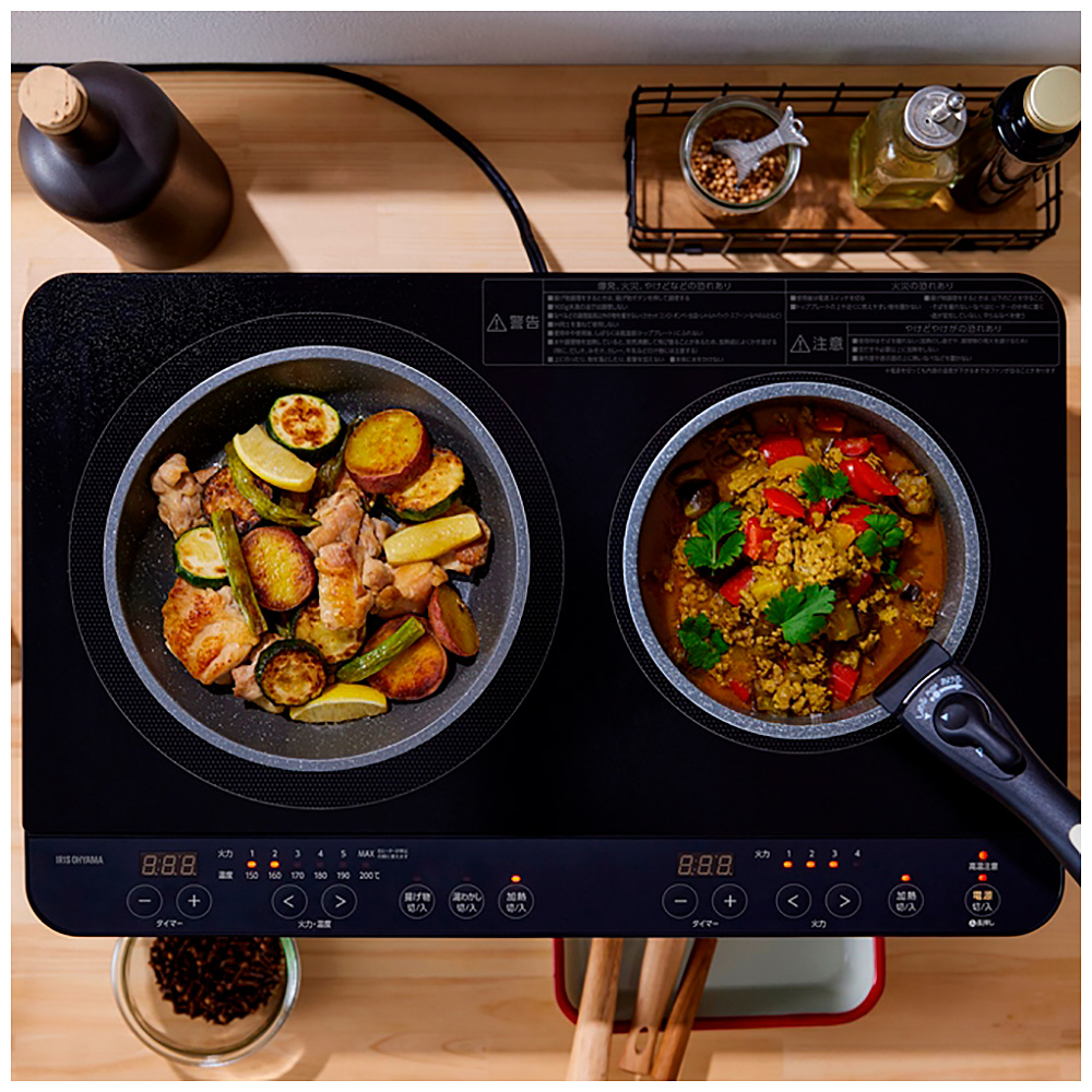 電気工事なしですぐに使える、2口タイプのIHコンロです。