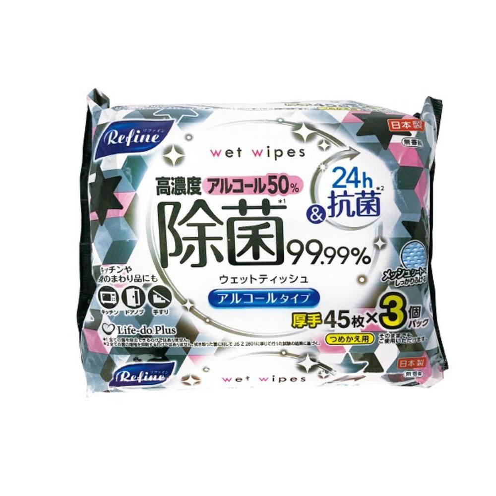 リファイン 高濃度アルコール50% 除菌ウェットティッシュ 45枚 3個入