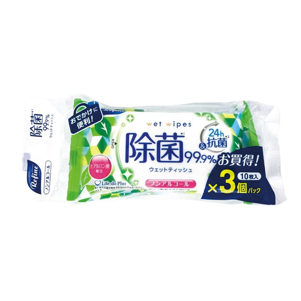 リファイン ノンアルコール除菌 ポケットウェットティッシュ 10枚 3個入