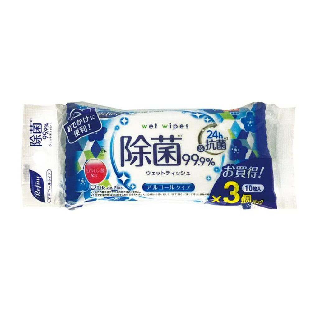 リファイン アルコール除菌 ポケットウェットティッシュ 10枚 3個入