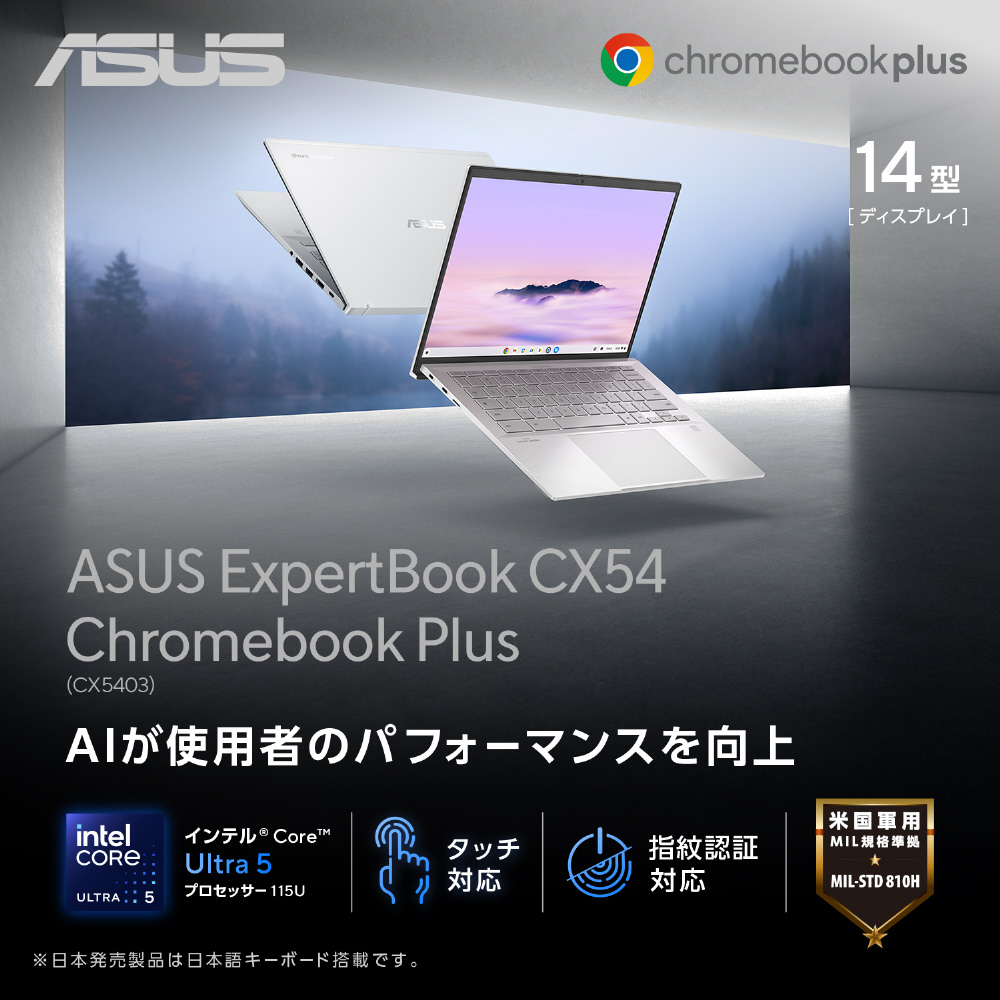 ノートパソコン ExpertBook CX54 Chromebook Plus(CX5403) フォグシルバー CX5403CMA-QM0272 [14.0型 /Chrome OS /intel Core Ultra 5 /メモリ:16GB /SSD:128GB /日本語版キーボード /2024年9月モデル]