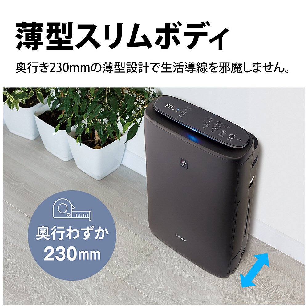 たっぷり加湿と低騒音で、ワンルームや寝室にも置きやすい薄型スリムモデル。