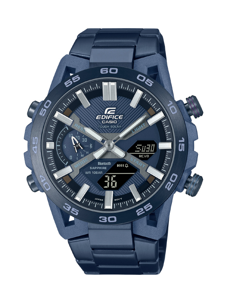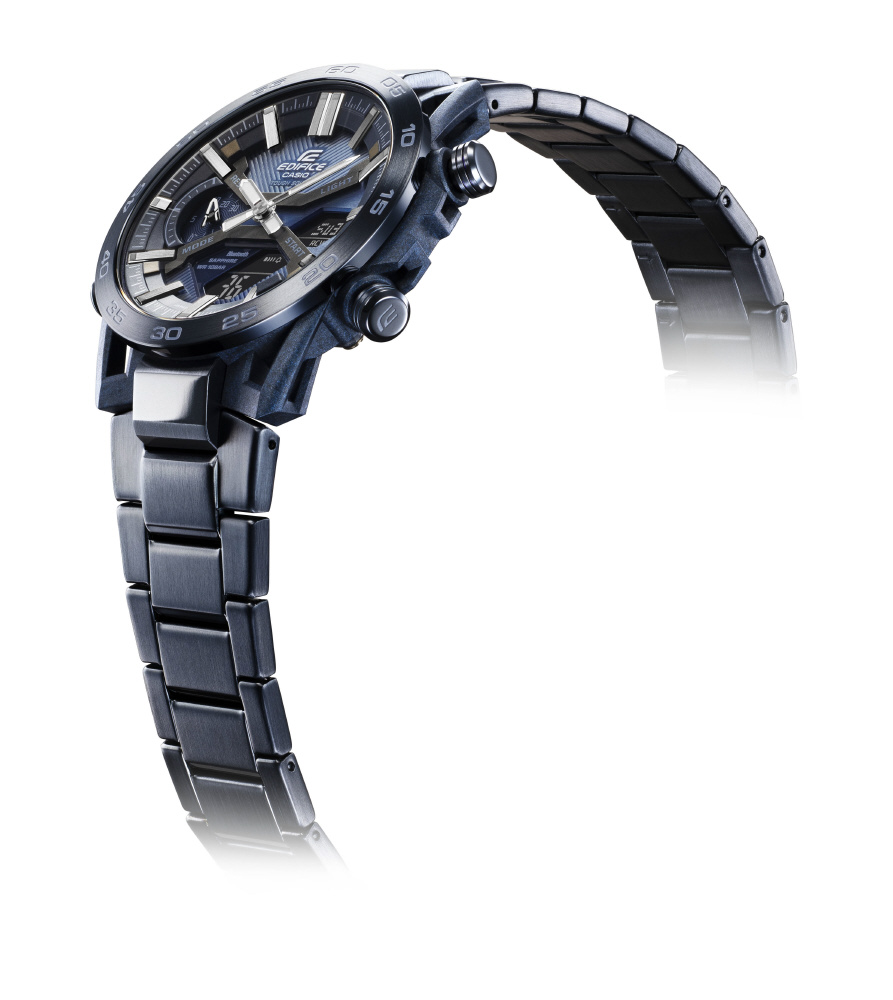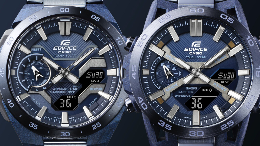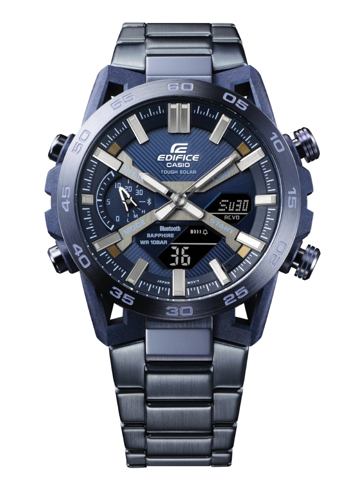 EDIFICEで初めて青のカーボンファイバー強化樹脂ケースを開発し、ECB-2000 SOSPENSIONEとECB-2200 WINDFLOWに採用。