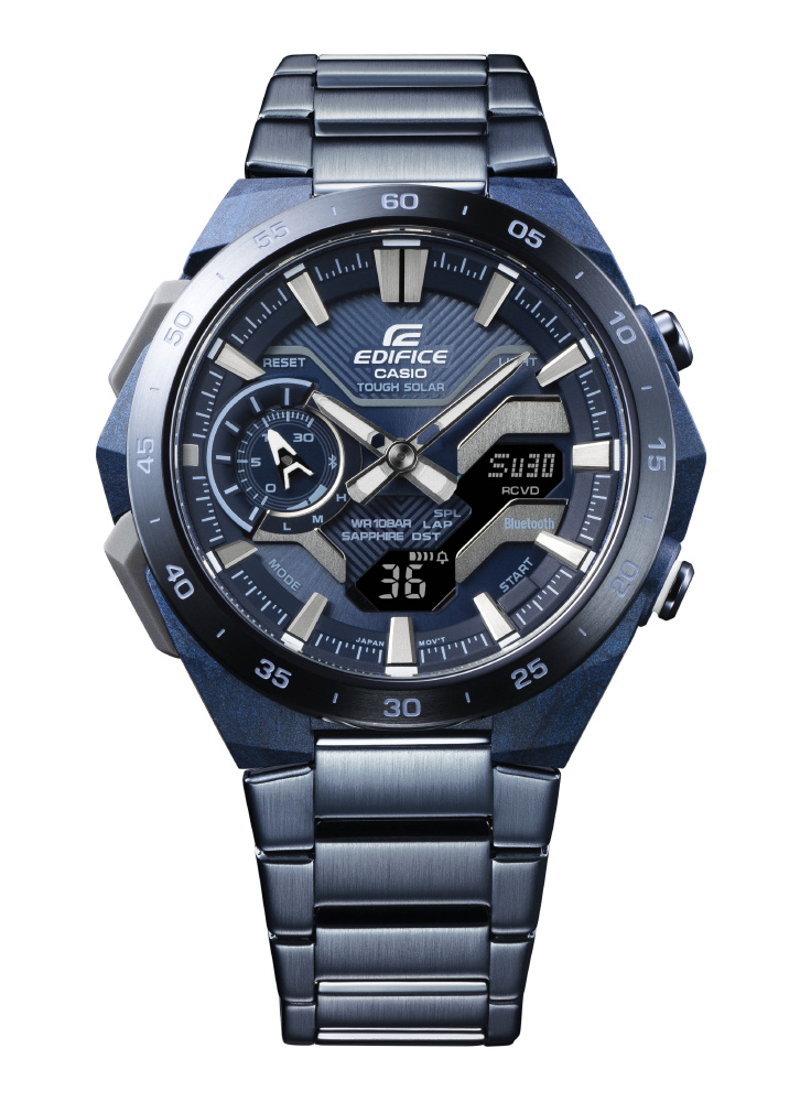 EDIFICEで初めて青のカーボンファイバー強化樹脂ケースを開発し、ECB-2000 SOSPENSIONEとECB-2200 WINDFLOWに採用。