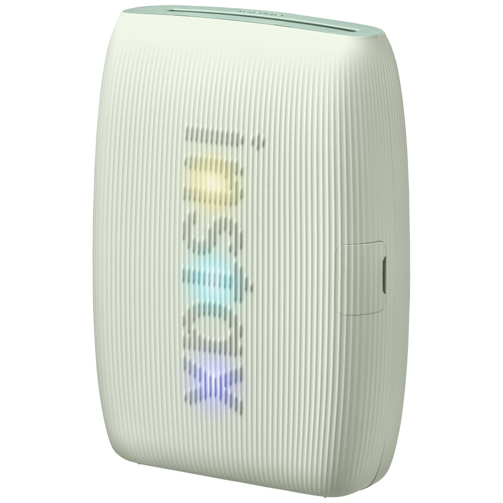 「mini Link」シリーズの特長である縦ラインの凹凸の上から「instax」ロゴをデザインする新感覚な本体デザインを採用。電源ON時などにロゴ周辺の3色LEDがカラフルに光り、「Link 3」の楽しみの広がりを表現します。