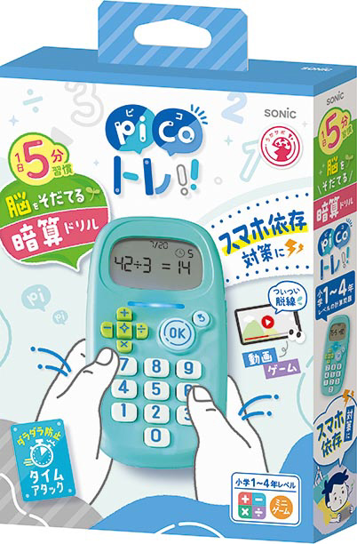 ・1日5分習慣、脳をそだてる暗算ドリル「ピコトレ」で、算数力をはぐくもう!学習指導要領に基づいた小学1?4年レベルの四則計算問題15000問以上と、3種の数字ミニゲームを収録。ゲーム感覚でチャレンジ!音と光で自動採点→まちがえた問題だけもう一度!リトライ機能で、ニガテそのまま…を防止♪タイムアタック機能でダラダラ対策。メリハリつけてチャレンジできる&意欲も刺激!