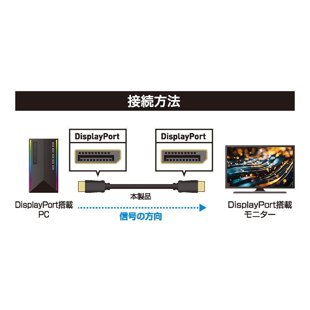 DP-1428BK DisplayPortケーブル Ver1.4 8K HDR対応 ブラック [2.8m]