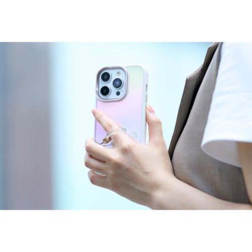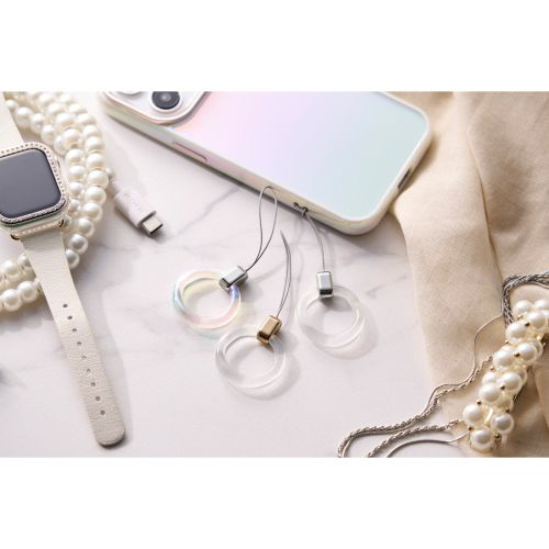 きらめくクリア感が特徴で、アクセサリーのような&meシリーズのフィンガーストラップです。リングは揺らめく水面のようにゆらぎと丸みのあるシルエットで優しい印象を与えます。